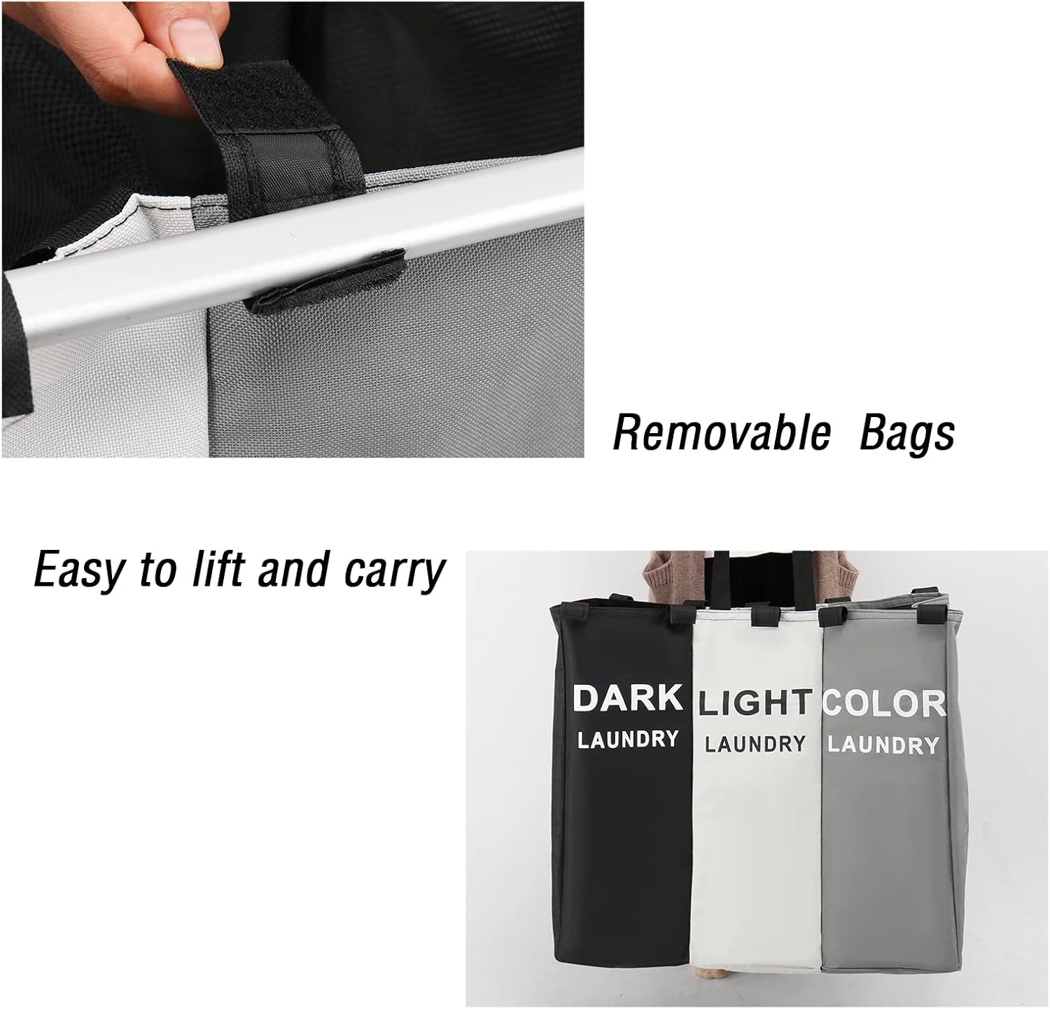 سل غسيل بثلاث خانات مستقلة يجعل فرز الملابس أسهل وأسرع. تصميم عملي يتيح لك تقسيم الملابس البيضاء والملونة والداكنة في نفس الوقت. مصنوع من مواد قوية وقابلة للغسل، يتحمل الاستخدام المكثف. خفيف الوزن وسهل الحمل، مما يوفر راحة أكبر عند نقل الملابس. اختيار عملي وموفر للمساحة لتنظيم مهام الغسيل اليومية بكفاءة.