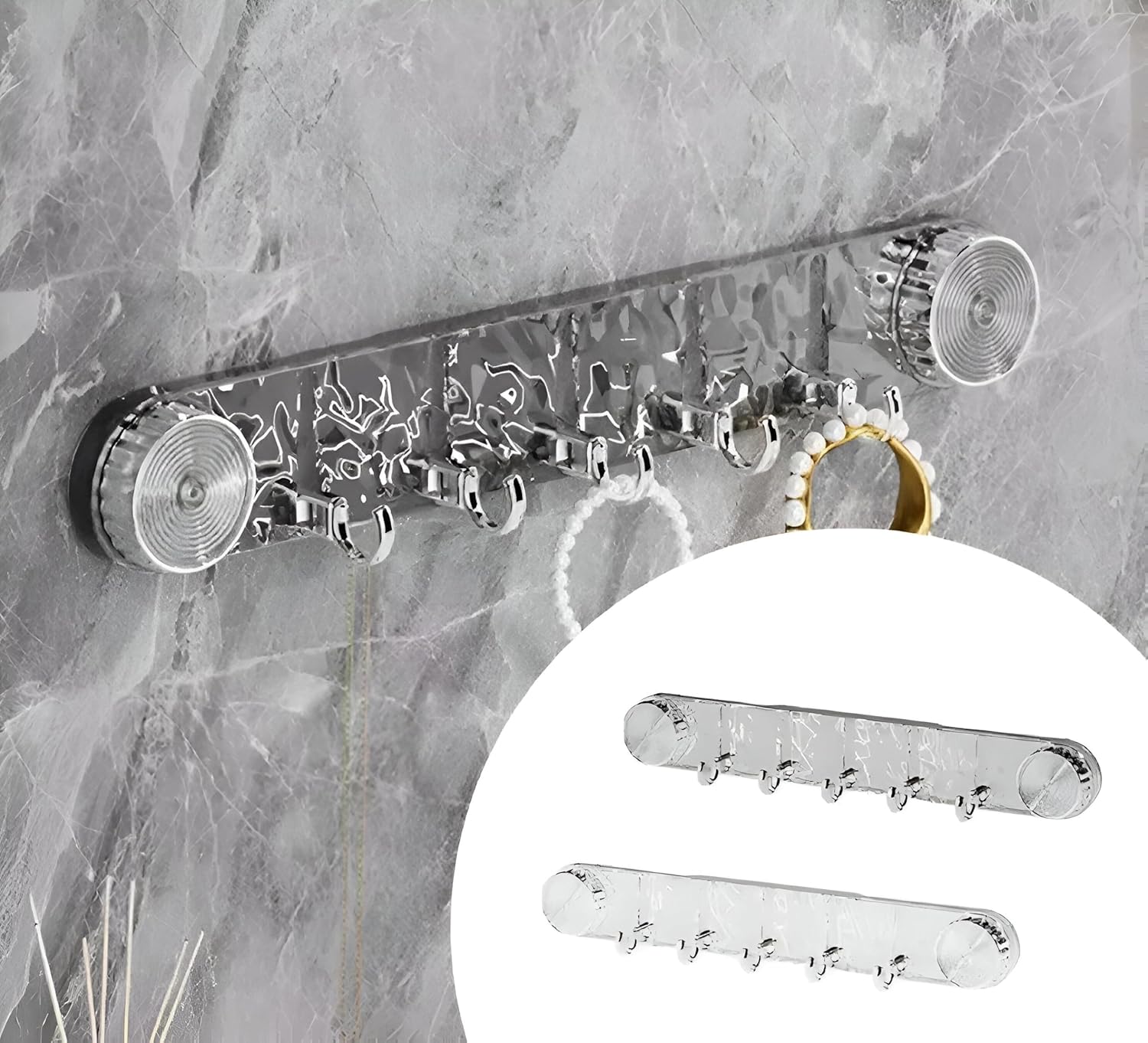 تعليقة حمام عملية وأنيقة مصنوعة من الأكريليك الشفاف عالي الجودة. تلتصق مباشرة على الجدران بدون الحاجة لثقب أو مسامير، مما يحافظ على سلامة ديكورك. تتحمل الرطوبة والماء بكفاءة، مثالية للحمام والمطبخ. تصميمها البسيط يناسب أي ديكور حديث. سهلة التركيب والإزالة دون ترك آثار. احصل على تنظيم أفضل وشكل جميل في منزلك بسهولة.