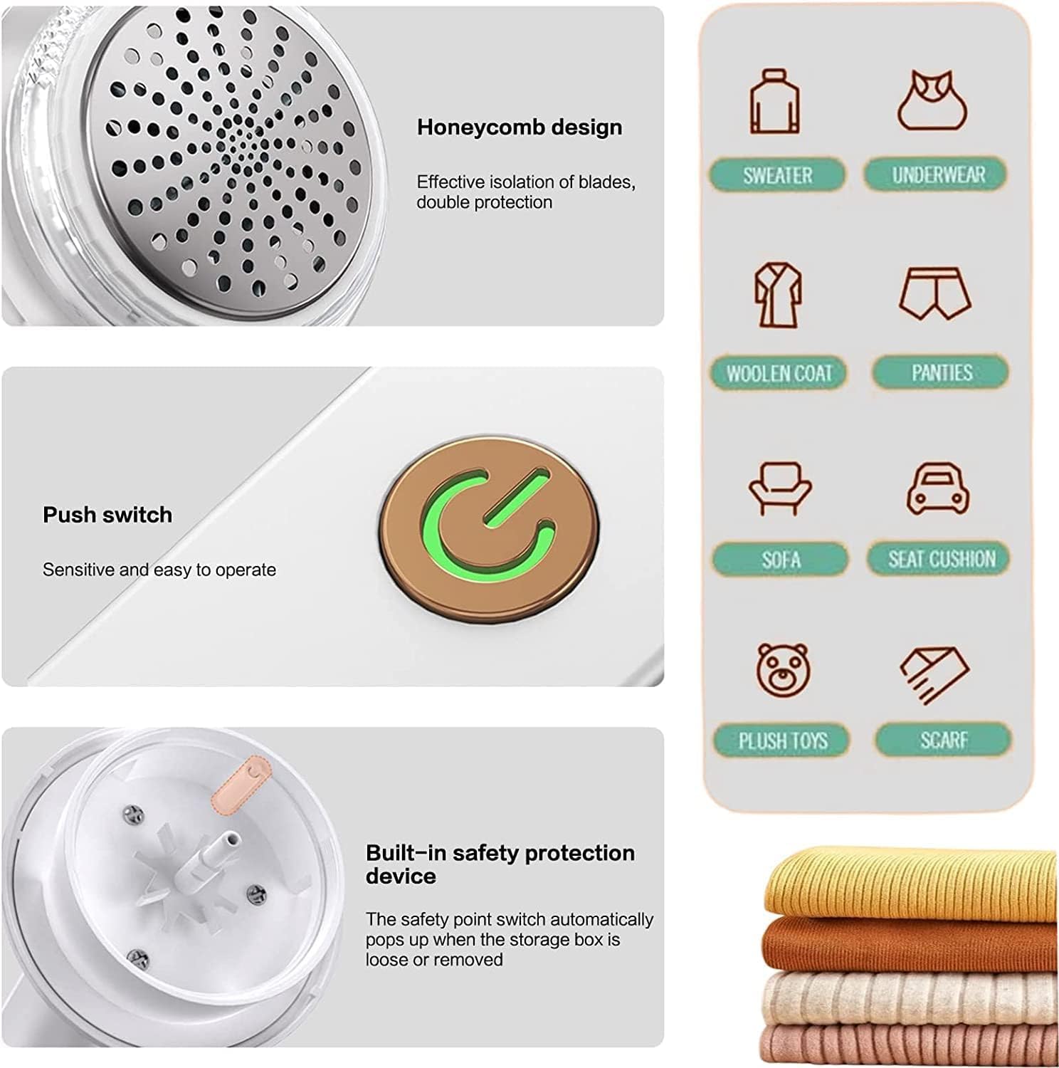 مكنة وبر فعالة تعيد ملابسك إلى مظهرها الأصلي بسهولة وسرعة. تزيل الوبر والكرات المزعجة من الأقمشة الحساسة دون إلحاق الضرر بها. حل اقتصادي يطيل عمر ملابسك المفضلة ويحافظ على جودتها. استثمر في جهاز صغير يحدث فرقاً كبيراً، واستمتع بملابس نظيفة وأنيقة طوال الوقت.